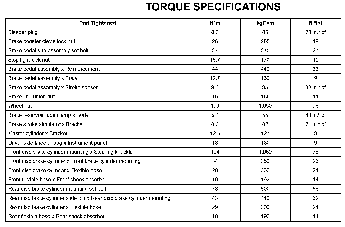 Brake - Torque Specifications: