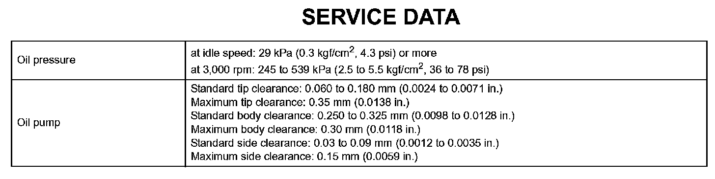 Lubrication - Service Data:
