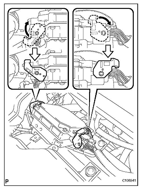 (c) Connect the 2 power steering ECU assembly connectors and securely lock the connectors.