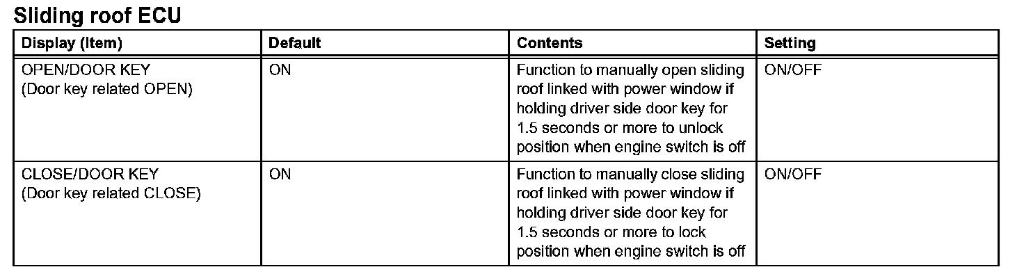 11. SLIDING ROOF SYSTEM CUSTOMIZING FUNCTION WITH INTELLIGENT TESTER (REFERENCE)