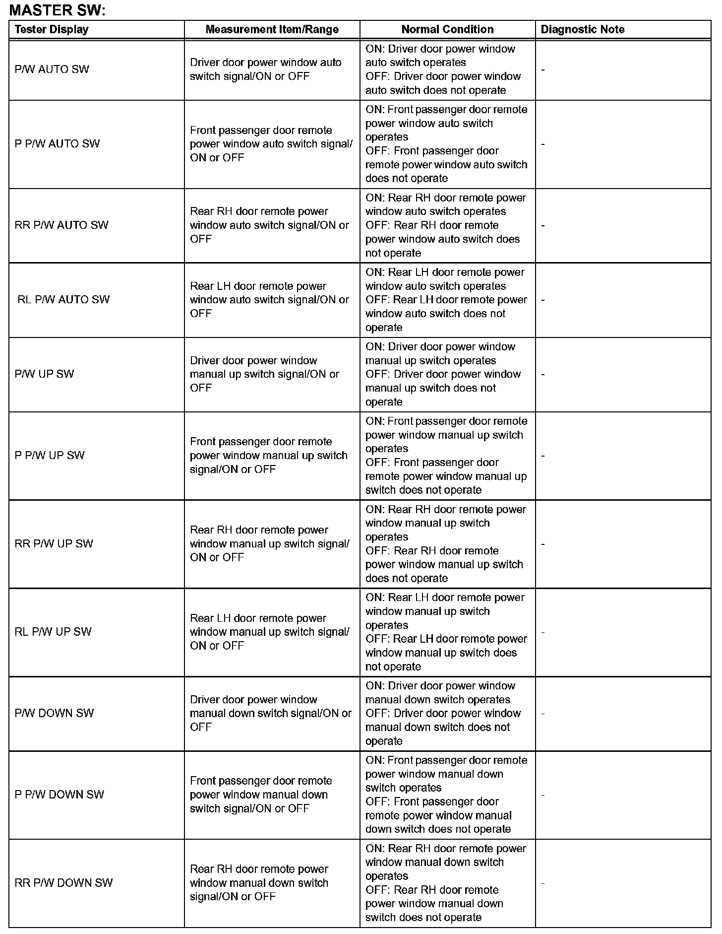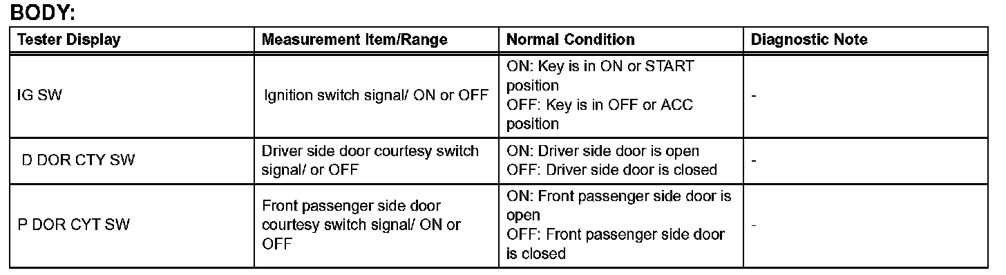 HINT: Using the DATA LIST displayed on the intelligent tester, you can read the value of the switch, sensor, actuator, etc. without parts removal. Reading the DATA LIST as the first step of troubleshooting is one way to shorten the labor time.