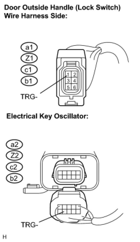 The entry lock switches (trigger switch) are built into the door outside handles of the all doors. The certification ECU detects the conditions of each lock switch.