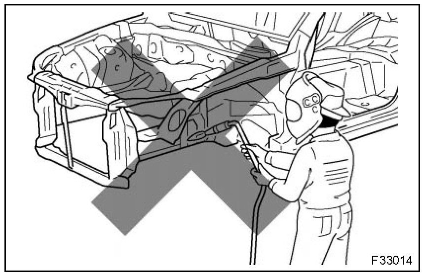 If body structure parts are heat repaired with an acetylene torch or other heating source, the crystalline organization of the steel sheet will change and their strength of the steel sheet will be reduced. The ability of the body to resist rust is significantly lowered as well since the rust resistant zinc coating is destroyed by heat and the steel sheet surface is oxidized.