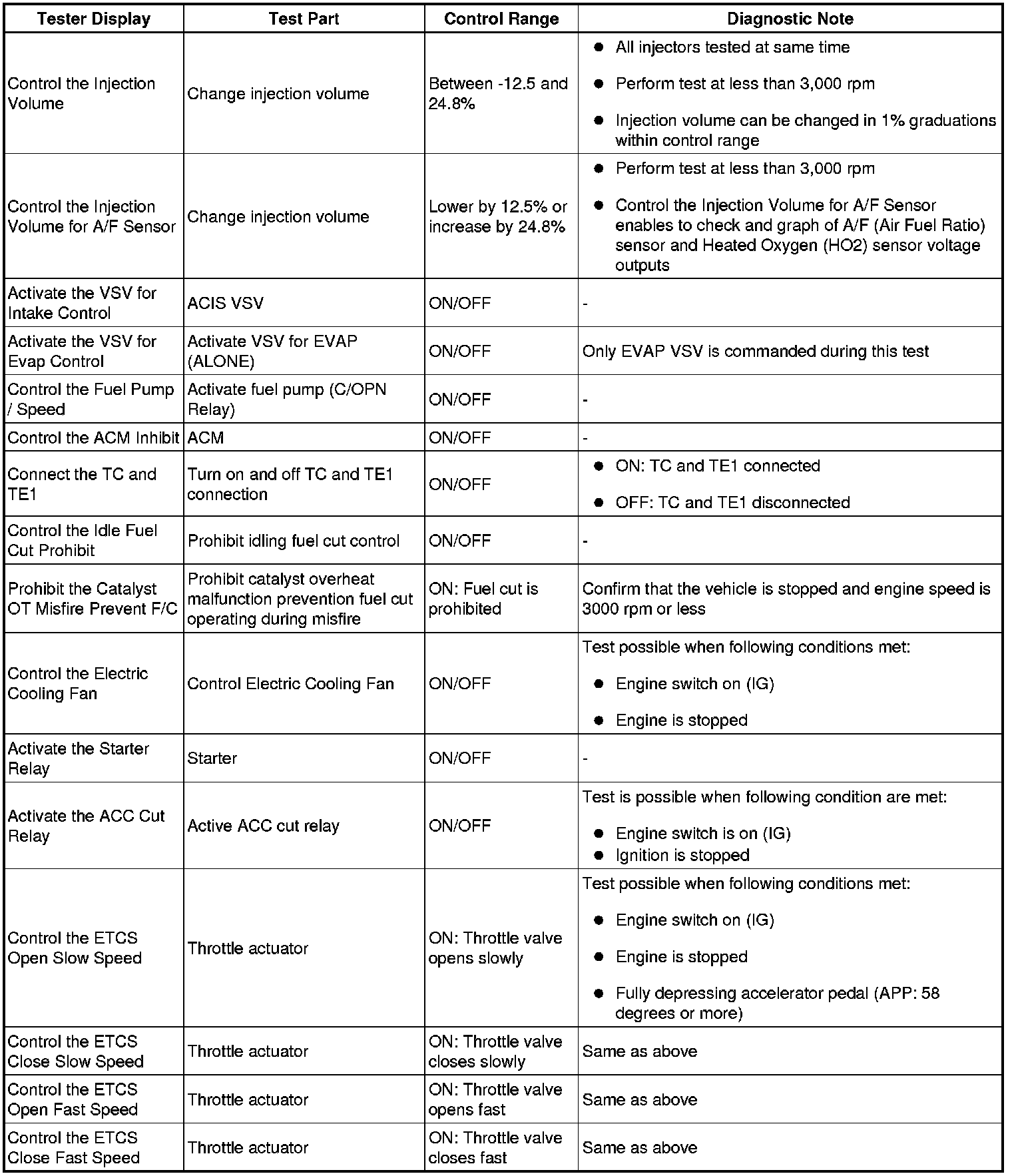 HINT: Performing an Active Test enables components including the relays, VSV (Vacuum Switching Valve) and actuators, to be operated without removing any parts. The Active Test can be performed with Techstream. Performing an Active Test as the first step in troubleshooting is one method of shortening diagnostic time.