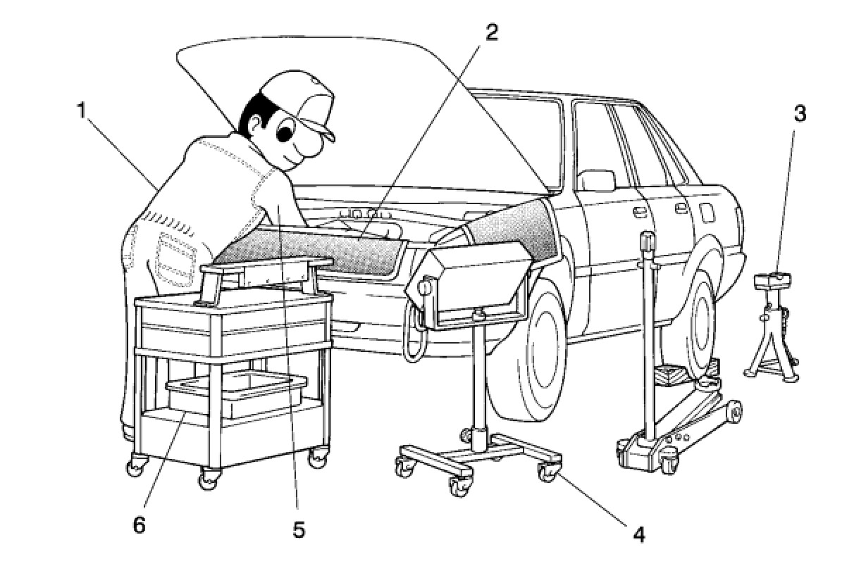 (b) JACKING UP AND SUPPORTING VEHICLE