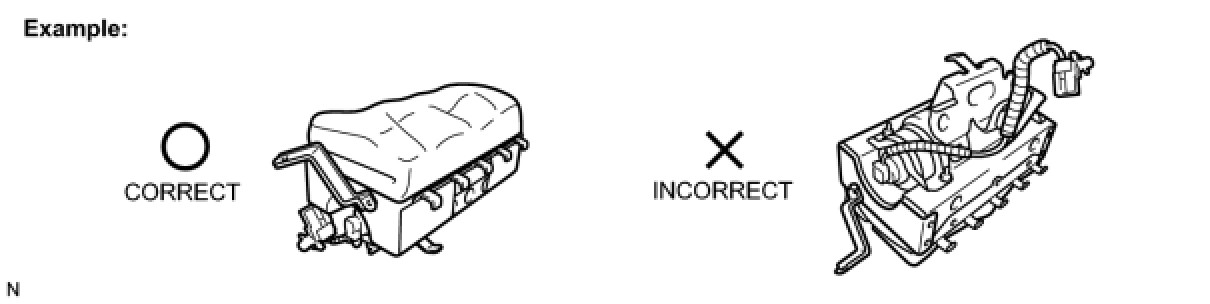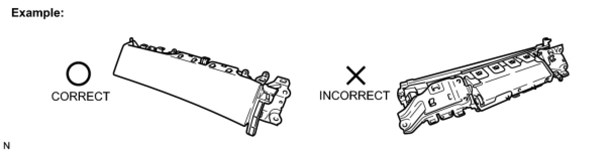 (1) Always place a removed or new knee airbag assembly with the airbag inflation direction facing upward. Placing the airbag assembly with the airbag inflation direction facing downward could cause a serious accident if the airbag inflates.