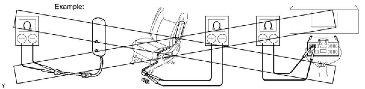 (1) Never measure the resistance of the seat outer belt. This may cause the pretensioner of the seat belt to activate, which could cause serious injury.