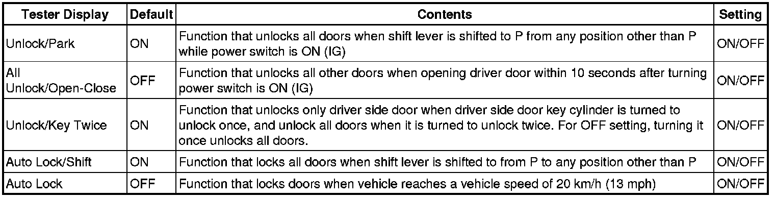 DOOR LOCK: POWER DOOR LOCK CONTROL SYSTEM: CUSTOMIZE PARAMETERS