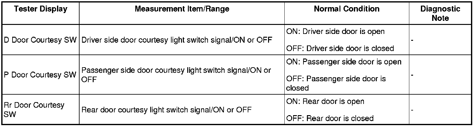 DOOR LOCK: POWER DOOR LOCK CONTROL SYSTEM: DATA LIST / ACTIVE TEST