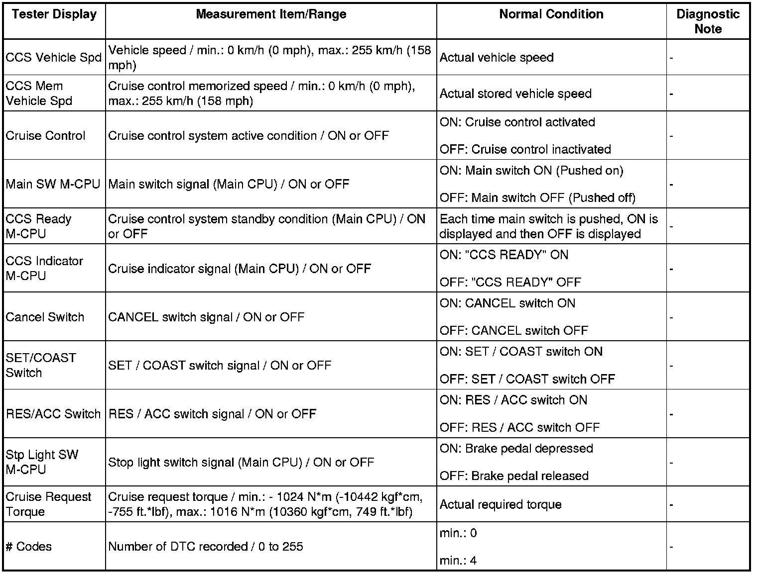 CRUISE CONTROL: CRUISE CONTROL SYSTEM: DATA LIST / ACTIVE TEST