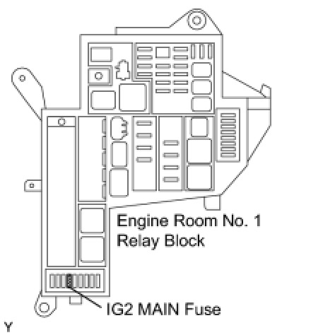 (b) Remove the IG2 MAIN fuse from the engine room No. 1 relay block.