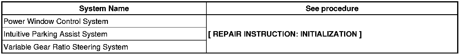 NOTE: When disconnecting the negative (-) battery terminal, initialize the following system after the terminal is reconnected.