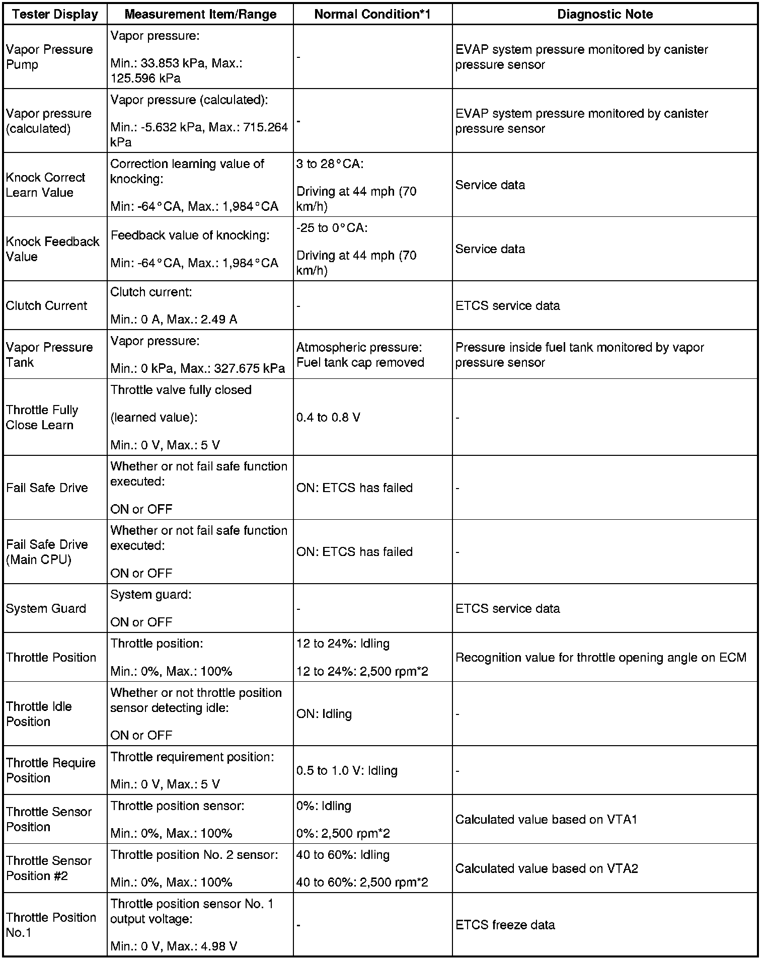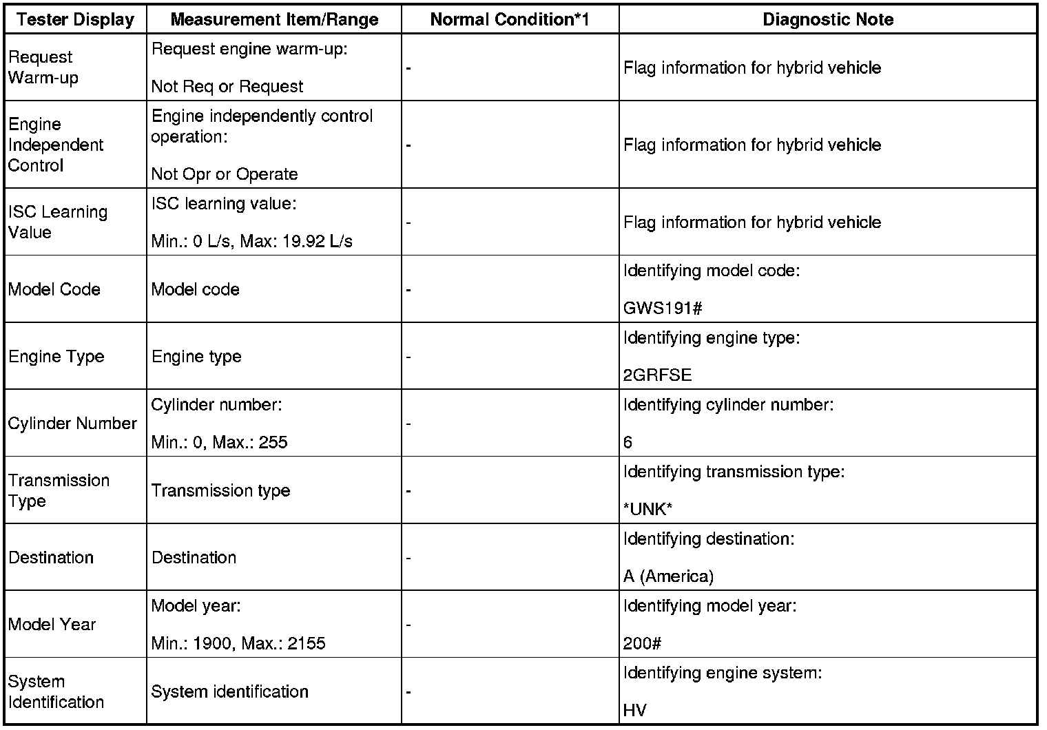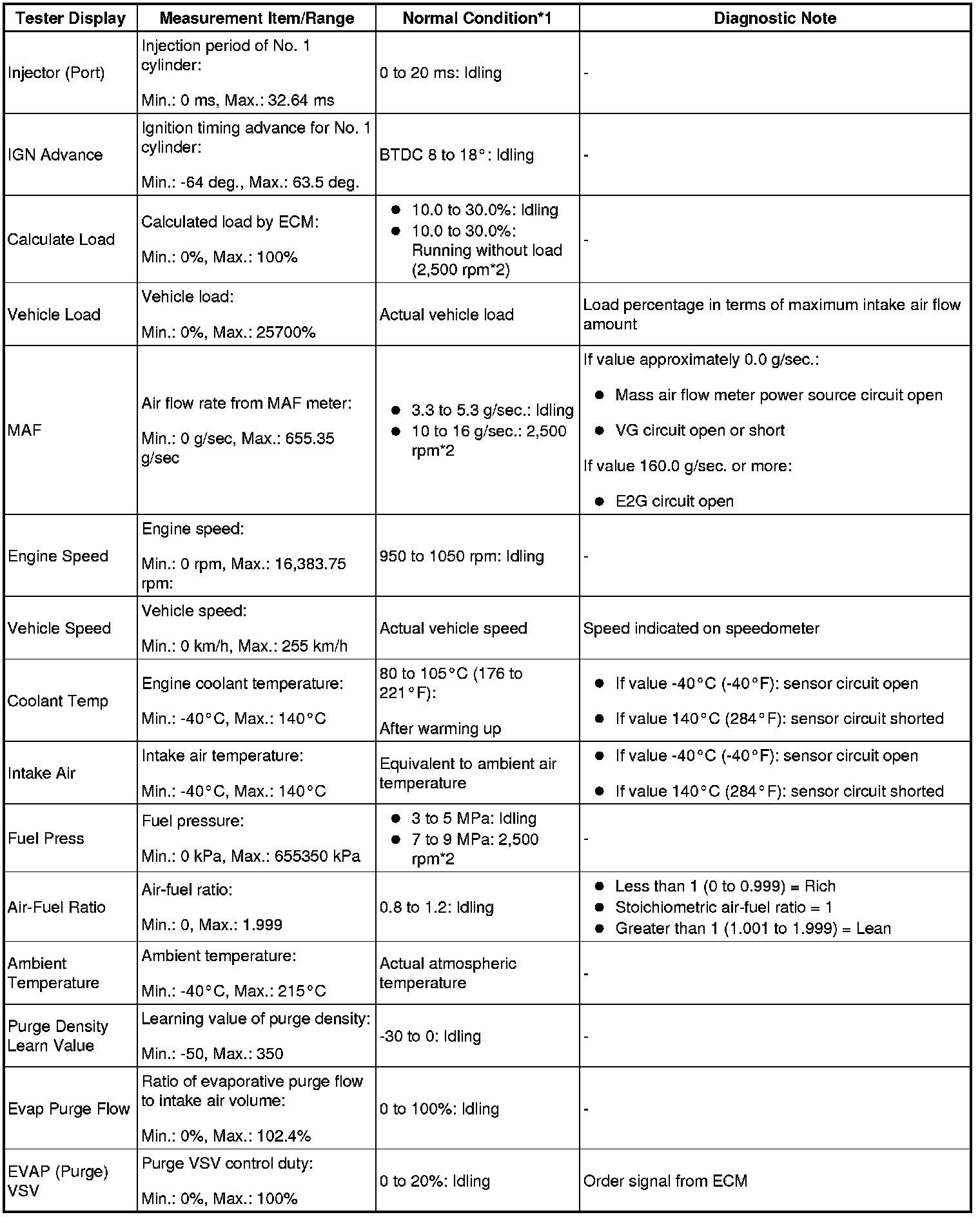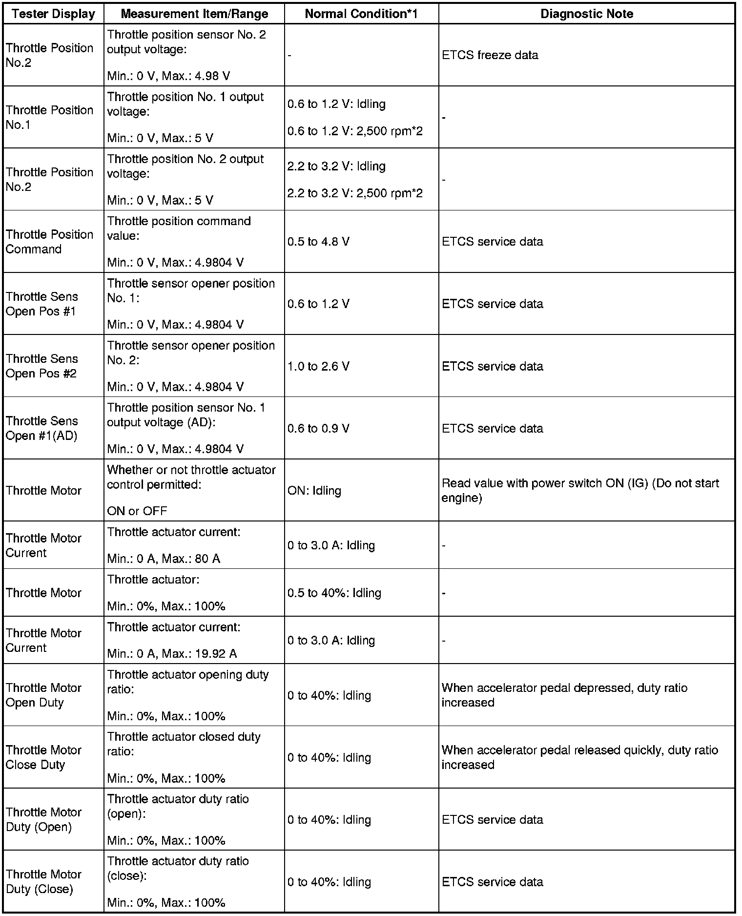 - *1: If no idling conditions are specified, the shift lever should be in the N or P position, and the A/C switch and all accessory switches should be off.