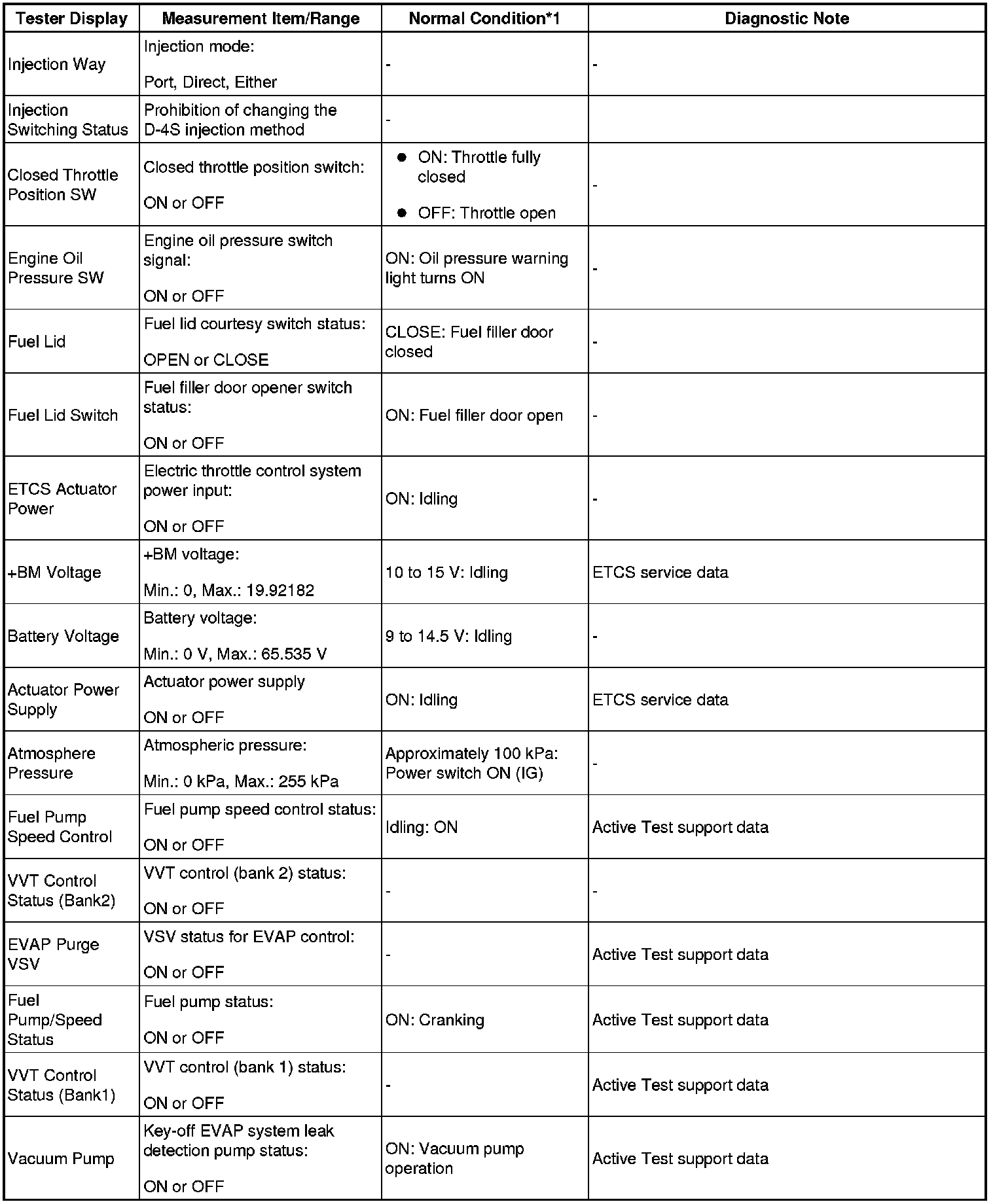 HINT: By reading the Data List displayed on the Techstream, you can check values, including those of the switches, sensors, and actuators, without removing any parts. Reading the Data List as the first step of troubleshooting is one method of shortening diagnostic time.