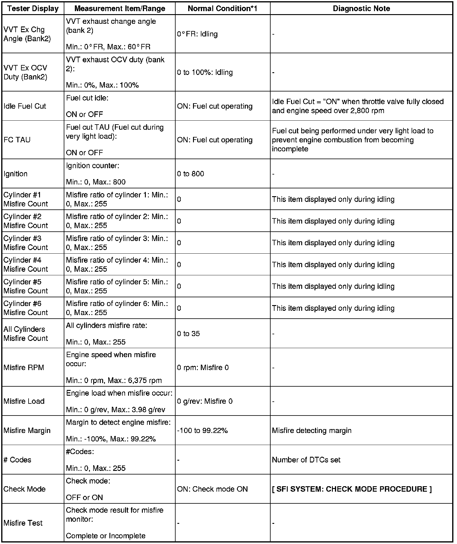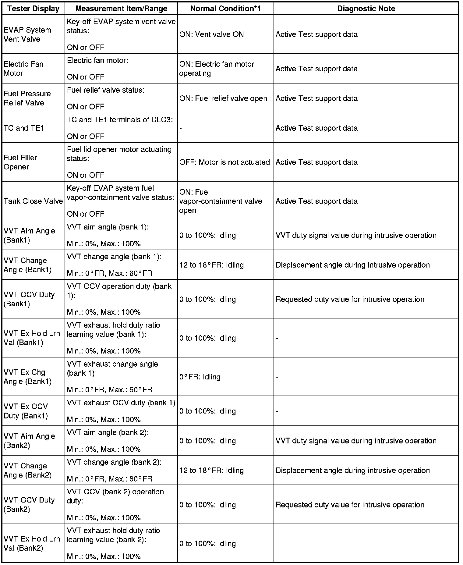 - *3: Data List values are only displayed when performing the following Active Tests: VVT B1, VVT B2, VVT EX B1 and VVT EX B2. For other Active Test, the Data List value will be 0.