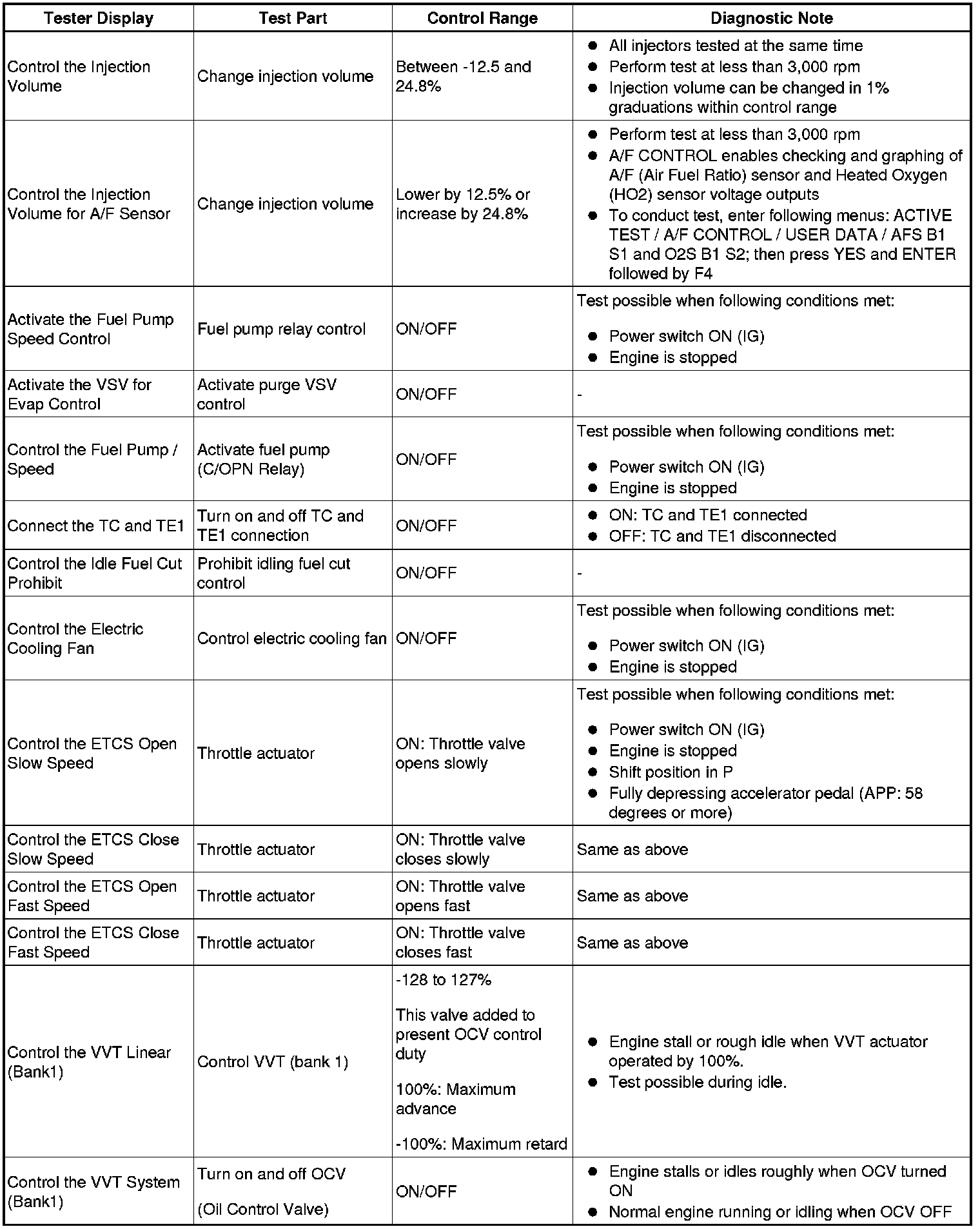 HINT: Performing an Active Test enables components including the relays, VSV (Vacuum Switching Valve) and actuators, to be operated without removing any parts. The Active Test can be performed with the Techstream. Performing an Active Test as the first step of troubleshooting is one method of shortening diagnostic time.