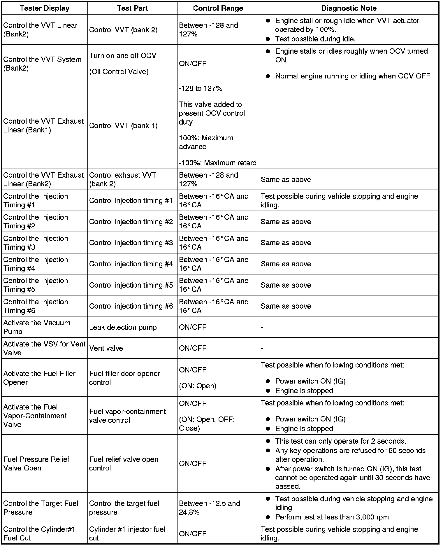 2GR-FSE ENGINE CONTROL SYSTEM: SFI SYSTEM: DATA LIST / ACTIVE TEST