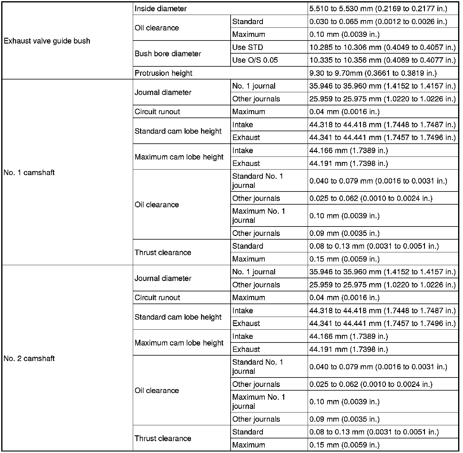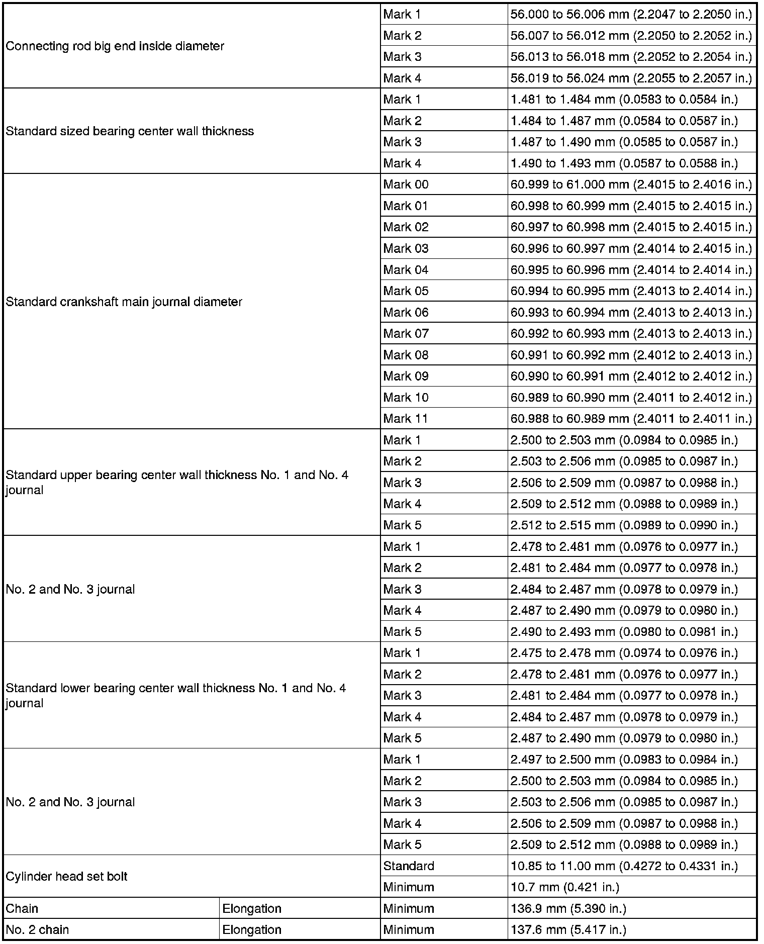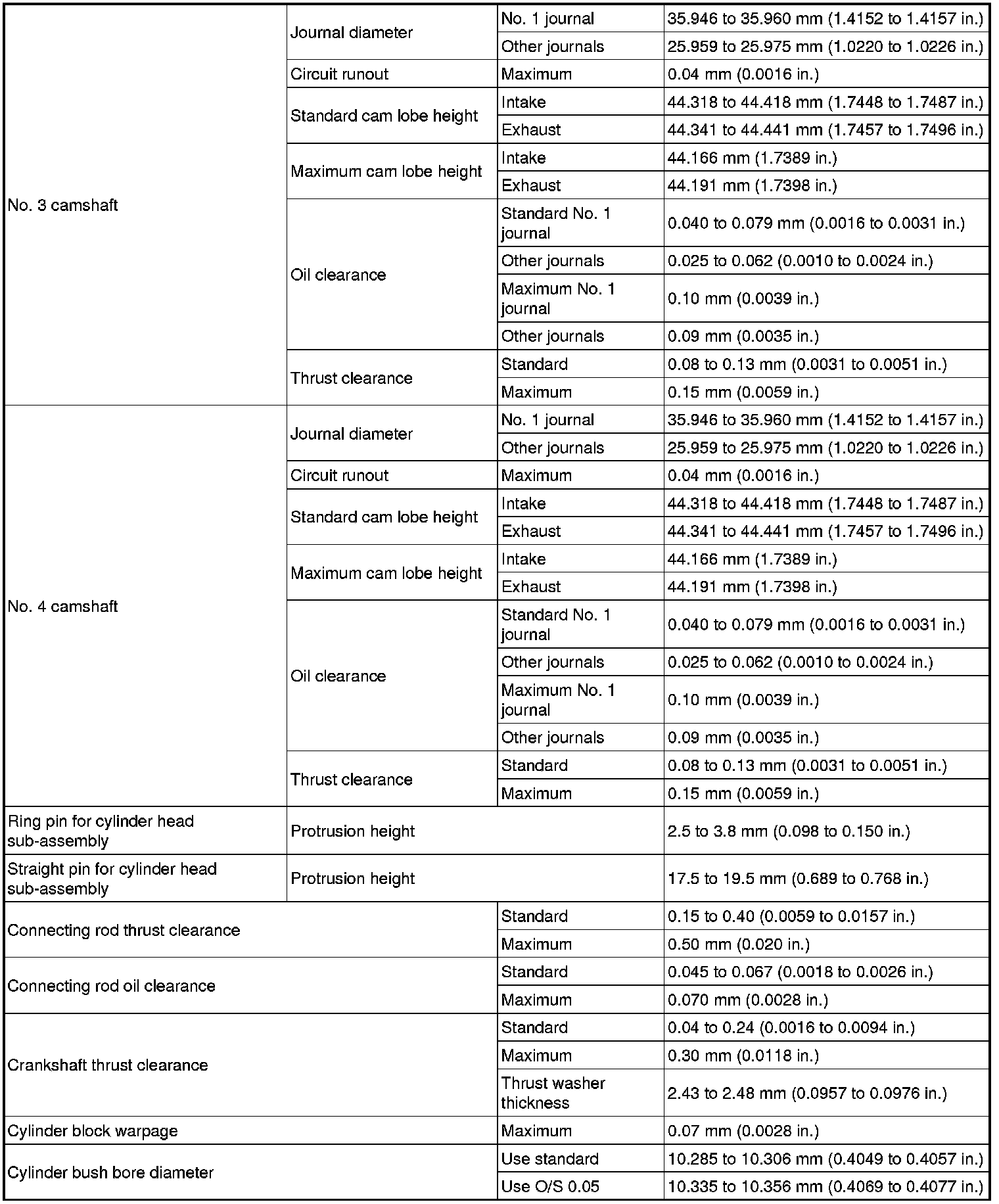 SERVICE SPECIFICATIONS: 2GR-FSE ENGINE MECHANICAL: SERVICE DATA