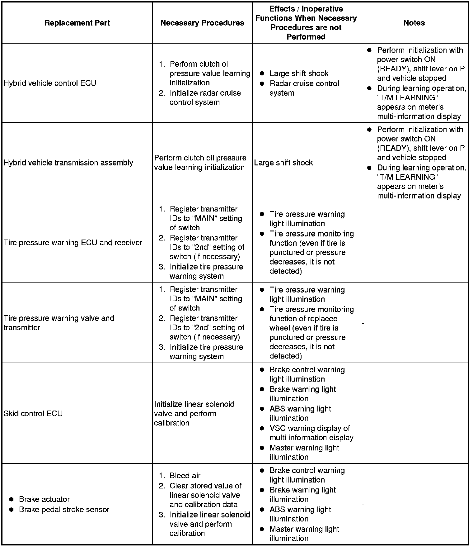 - If either the hybrid transmission assembly or hybrid vehicle control ECU is replaced, initialize the learned value of Reset Memory.