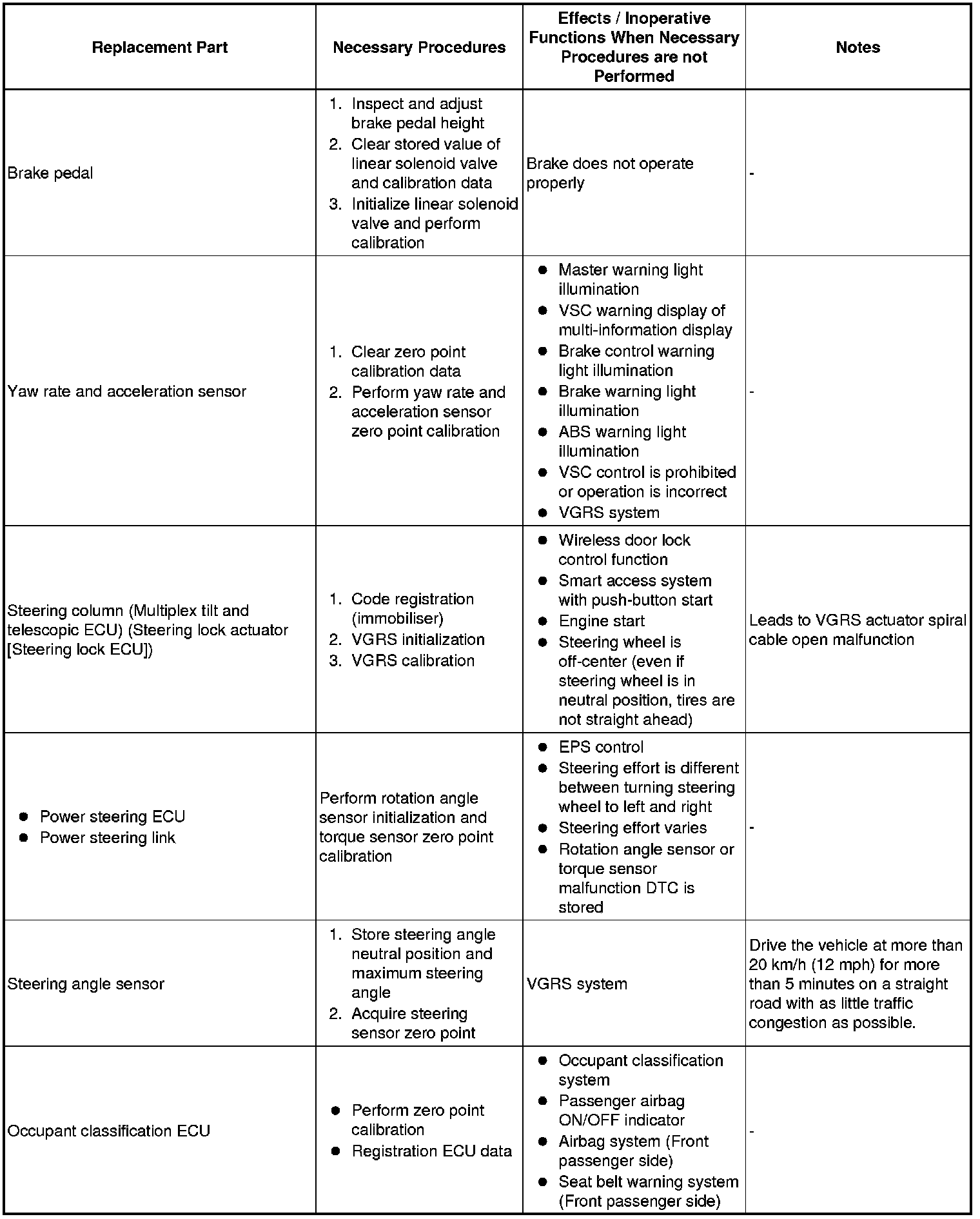 (f) Perform zero point calibration of yaw rate and acceleration sensor Programming and Relearning.