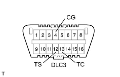 (2) Using SST, connect terminals 12 (TS) and 4 (CG) of the DLC3.