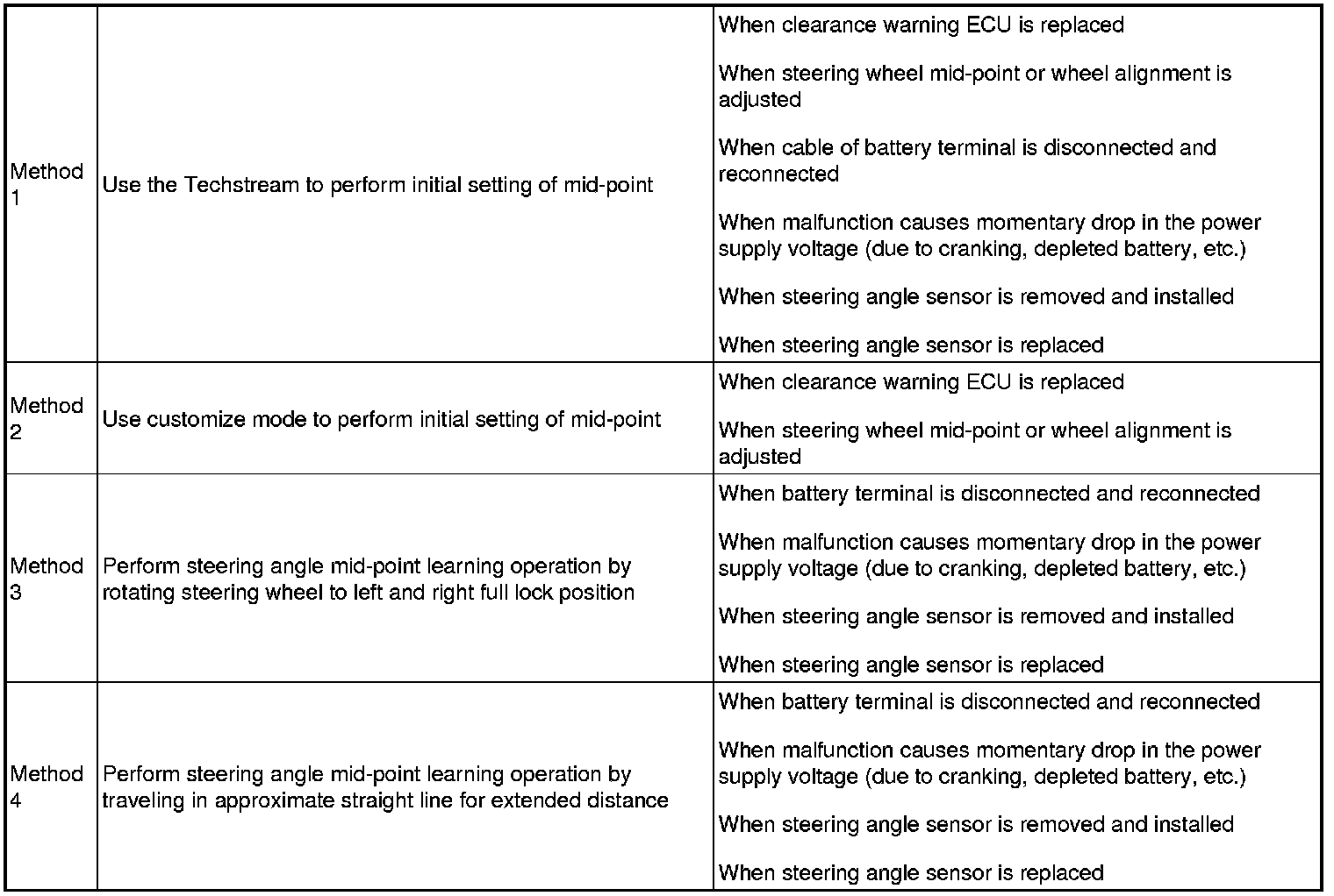 HINT: The mid-point learning operation (steering angle mid-point, maximum steering angle) can be performed using 4 methods: