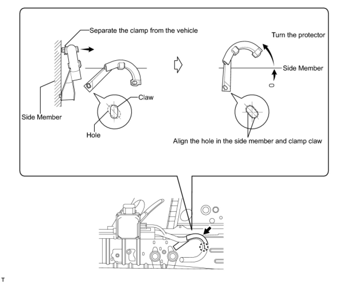 (d) Separate the clamp and turn the protector upward to remove it from the vehicle.