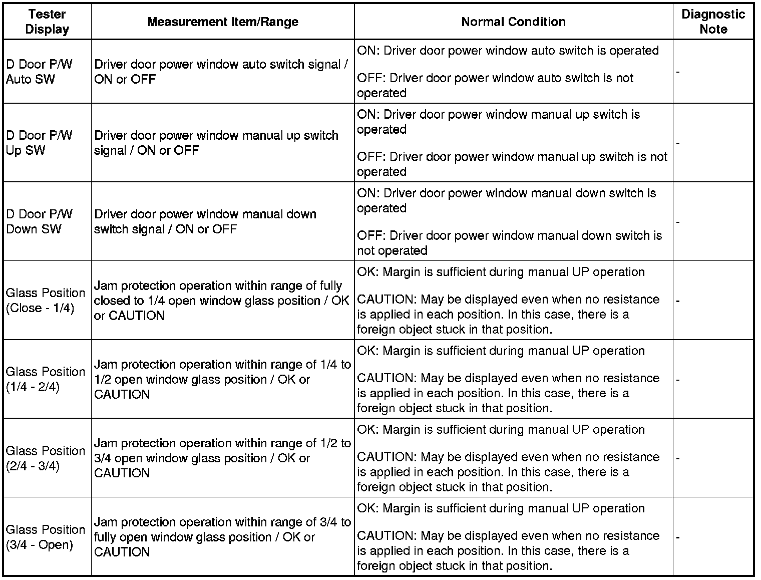 WINDSHIELD / WINDOWGLASS: POWER WINDOW CONTROL SYSTEM: DATA LIST / ACTIVE TEST