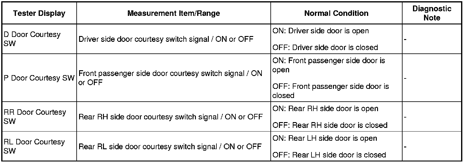 (3) Select the following menu items: Body / D-Door Motor / Data List.