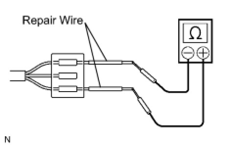 (b) If it is impossible to check resistance from the back of the connector, use a repair wire to check it.