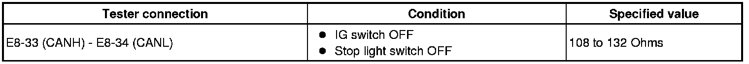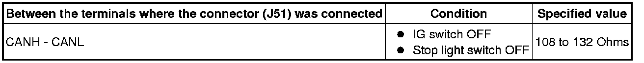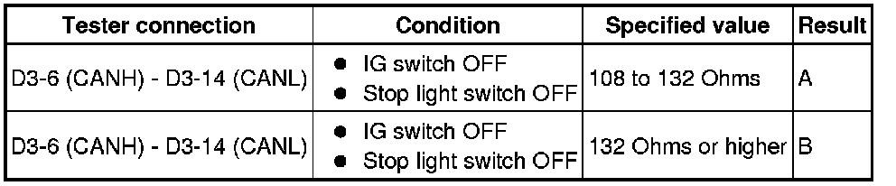 NOTE: When the measured value is 132 Ohms or more and a CAN communication system diagnostic code is output, there may be a fault other than a disconnection of the DLC3 sub bus line. For that reason, troubleshooting should be performed again from "How to Proceed with Troubleshooting" after repairing the trouble area.
