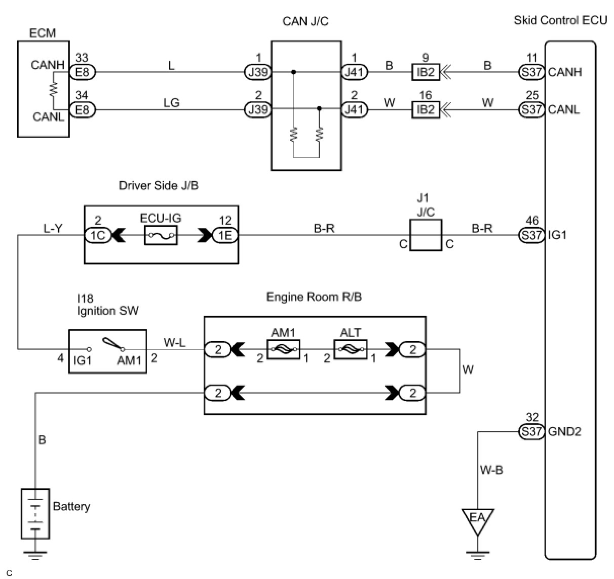 1. CHECK CAN BUS LINE FOR DISCONNECTION (SKID CONTROL ECU SUB BUS LINE)