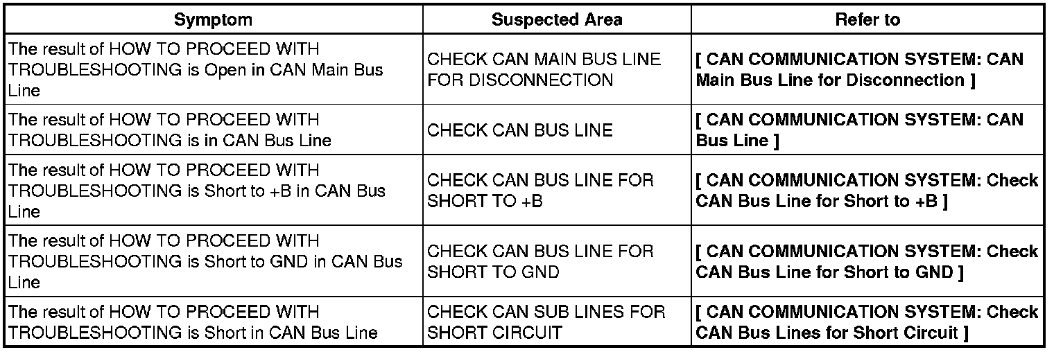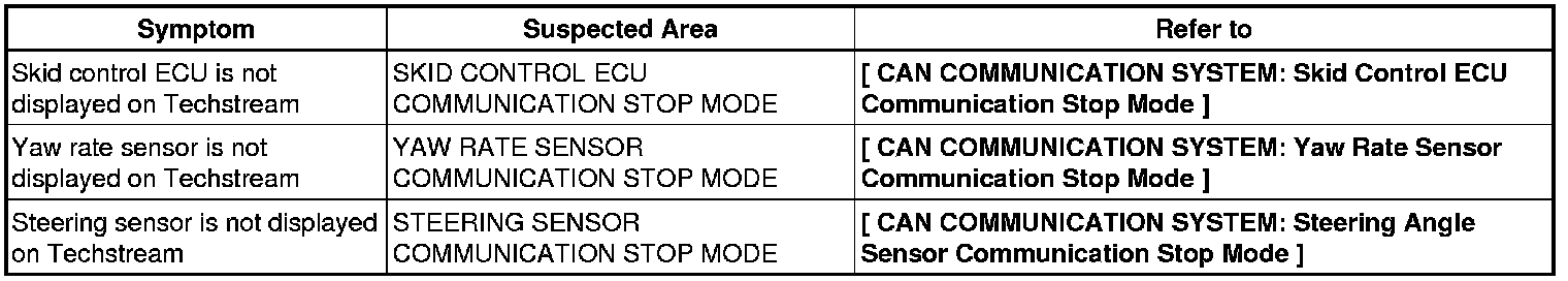 NOTE: If 2 or more ECUs or sensors are not displayed on the the Techstream, perform troubleshooting for the communication stop mode of each undisplayed ECU or sensor (Either side of the CAN sub bus lines may be open).