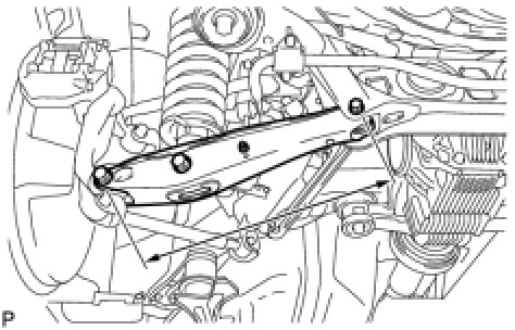 (1) Measure the distance between the centers of the 2 installation bolts of the rear No. 2 suspension arm assembly.