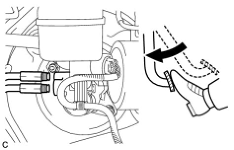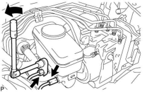 (a) Using a union nut wrench (10 mm), disconnect the 2 brake lines from the master cylinder.