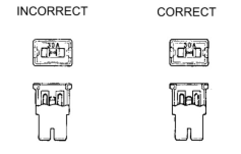 (2) The connectors to the center airbag sensor assembly should be connected or disconnected with the sensor installed to the vehicle. If the connectors are connected or disconnected while the center airbag sensor assembly is not installed, the SRS may activate.