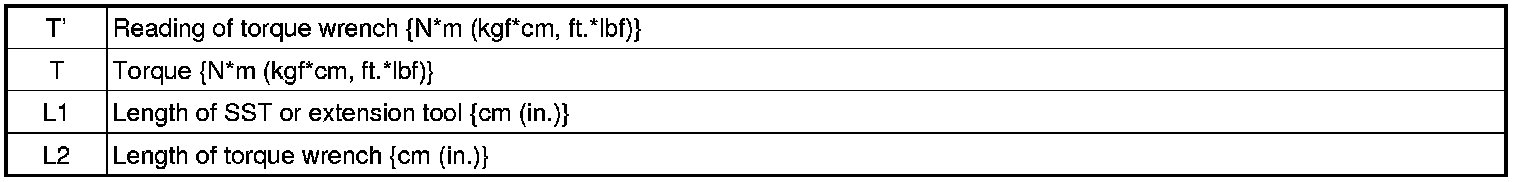 (1) Use the formula below to calculate special torque values for situations where SST or an extension tool is combined with a torque wrench.