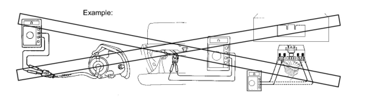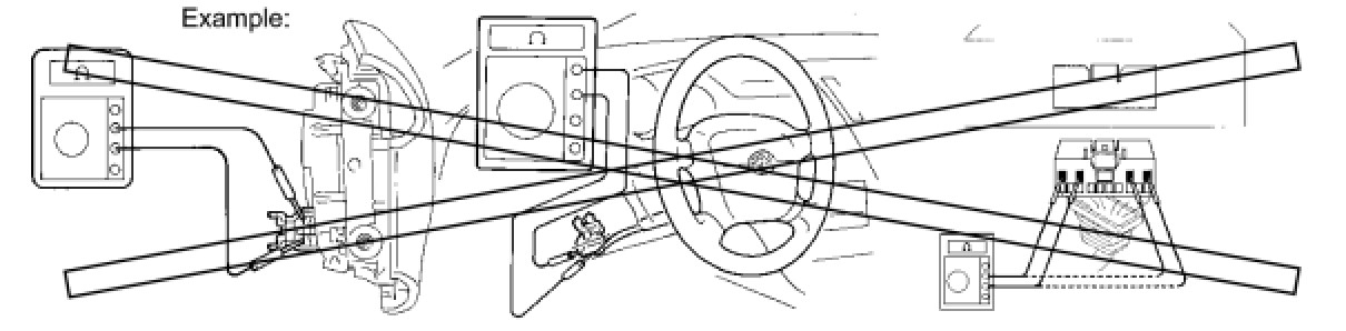 (2) Never measure the resistance of the airbag squib. This may cause the airbag to deploy, which could cause serious injury.
