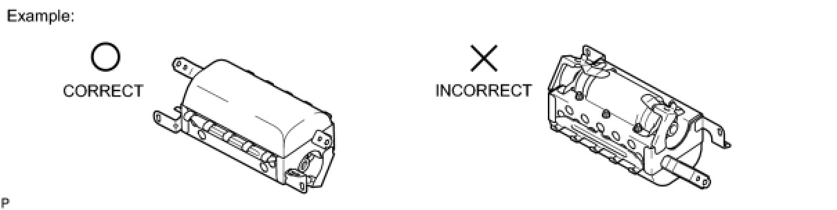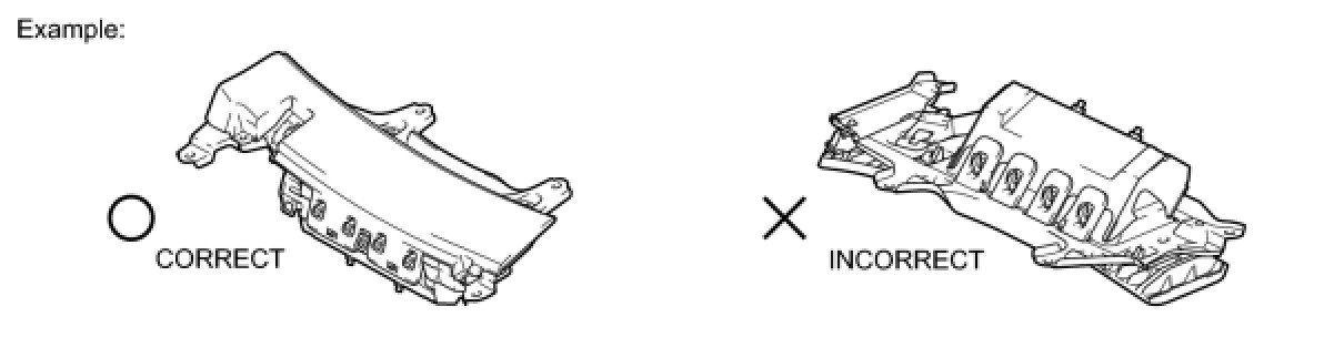 (1) Always place a removed or new front passenger side knee airbag assembly with the airbag deployment direction facing upward. Placing the airbag assembly with the airbag deployment direction facing downward could cause a serious accident if the airbag deploys.