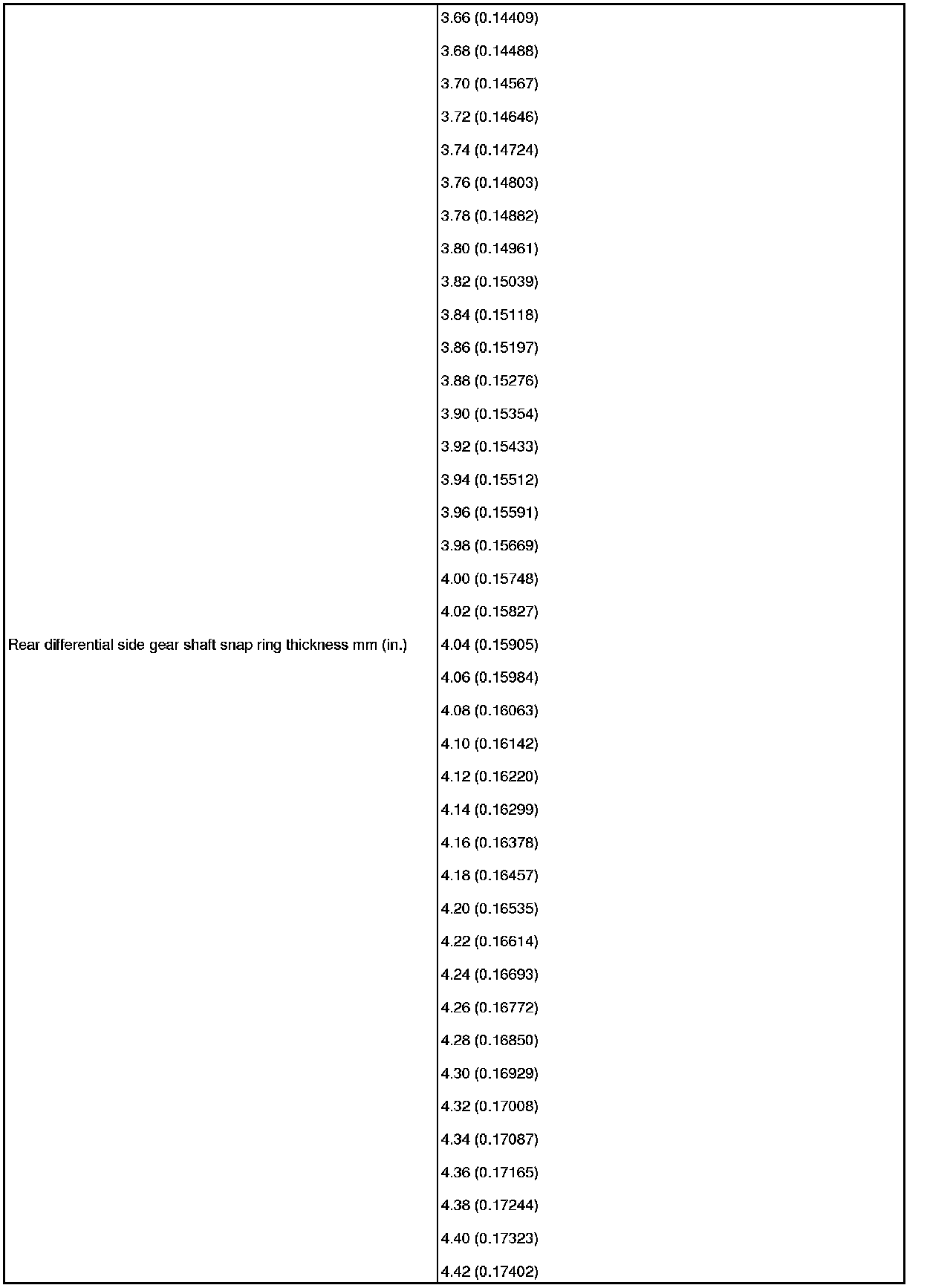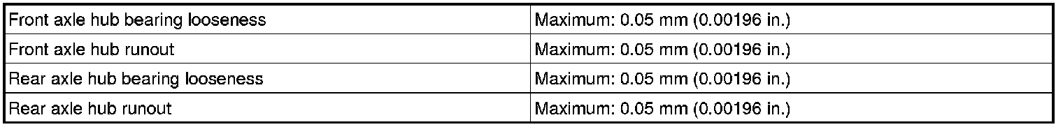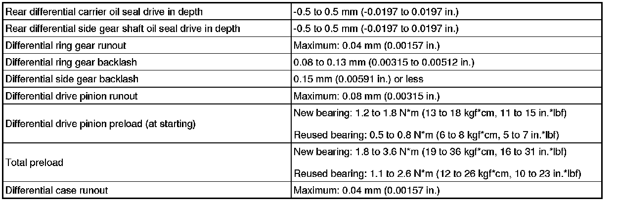 SPECIFICATIONS: AXLE AND DIFFERENTIAL: SERVICE DATA