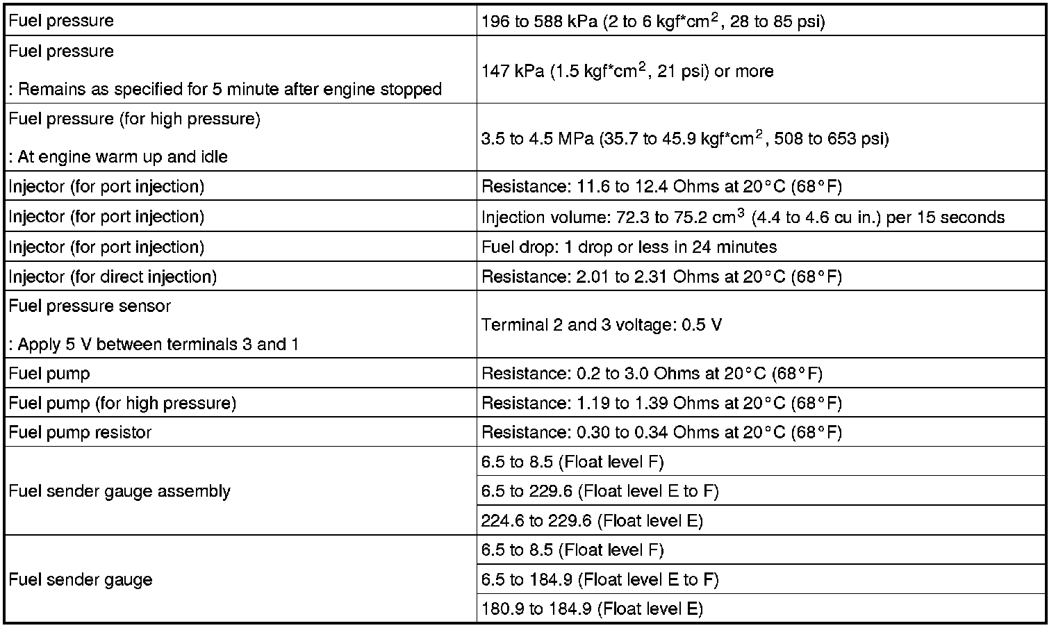 SPECIFICATIONS: 2UR-GSE FUEL: SERVICE DATA