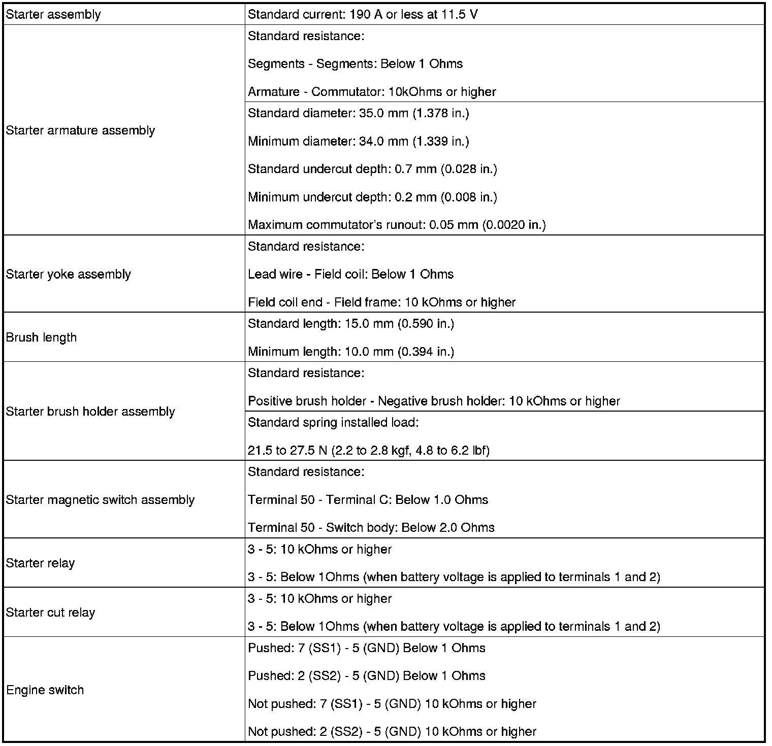 SPECIFICATIONS: 2UR-GSE STARTING: SERVICE DATA