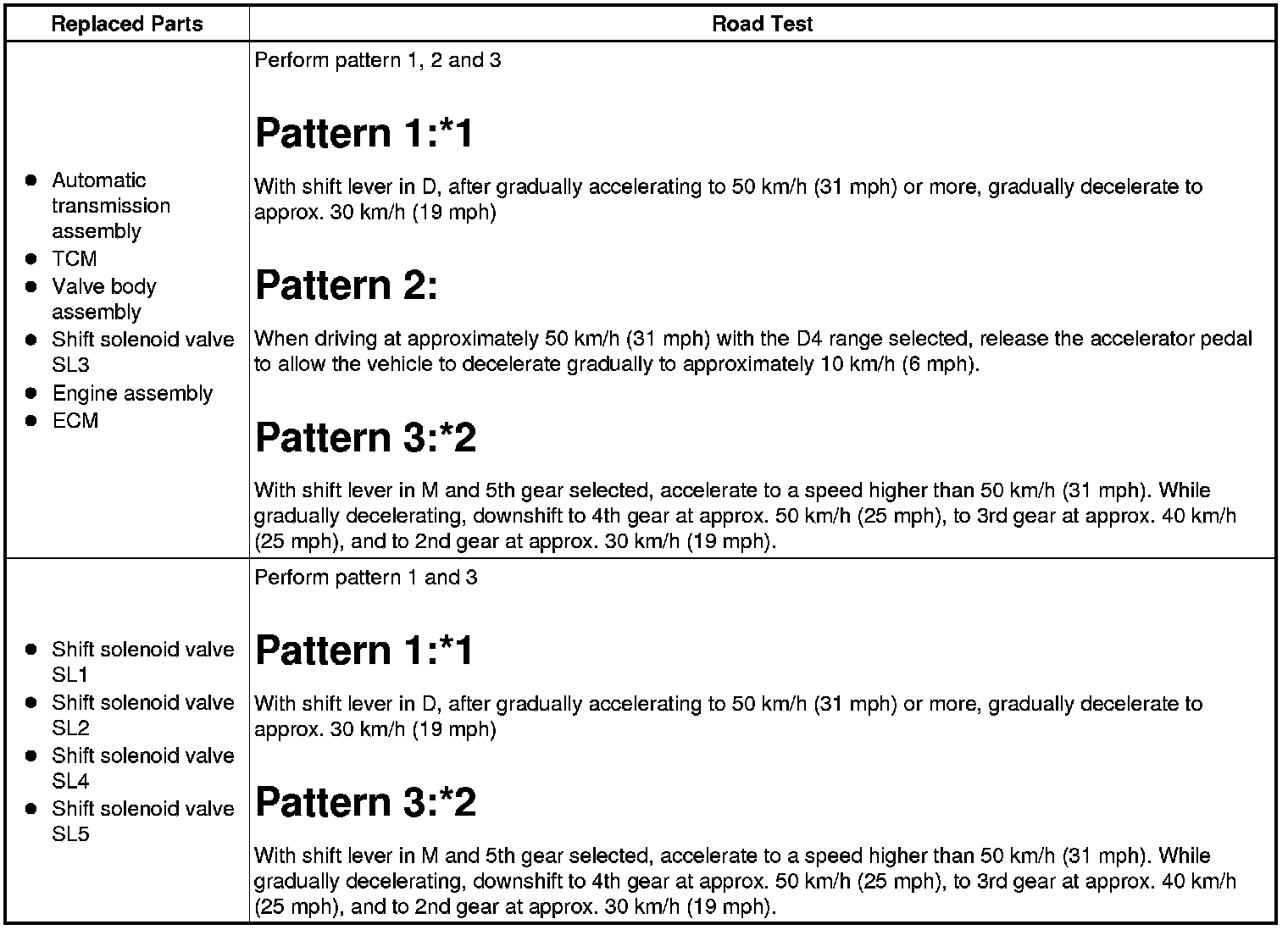 (3) Repeat the road tests until the shift shock and engine speed overrun (engine speed flare when shifting) reach an acceptable level.