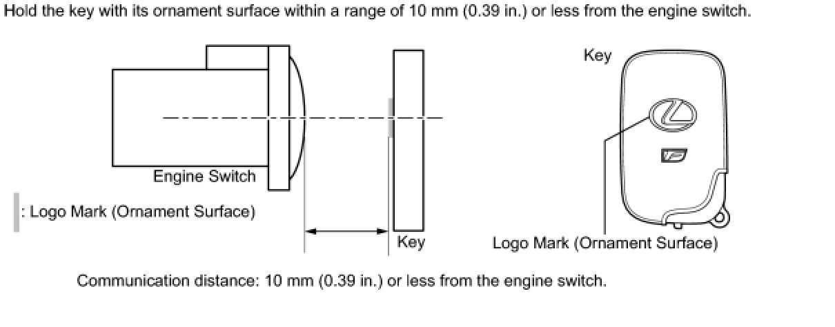 (a) Vehicles with the smart access system with push button start do not have a key slot. Therefore, hold the key close to the engine switch to register the key, as shown in the illustration below.