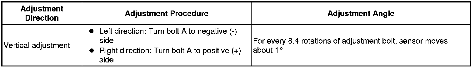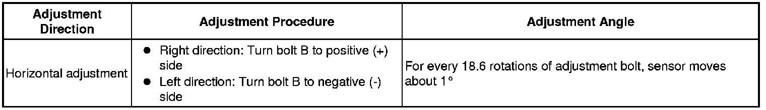 If the divergence is not as specified, use a screwdriver to adjust bolt B until the divergence of the radar beam axis is 0°.