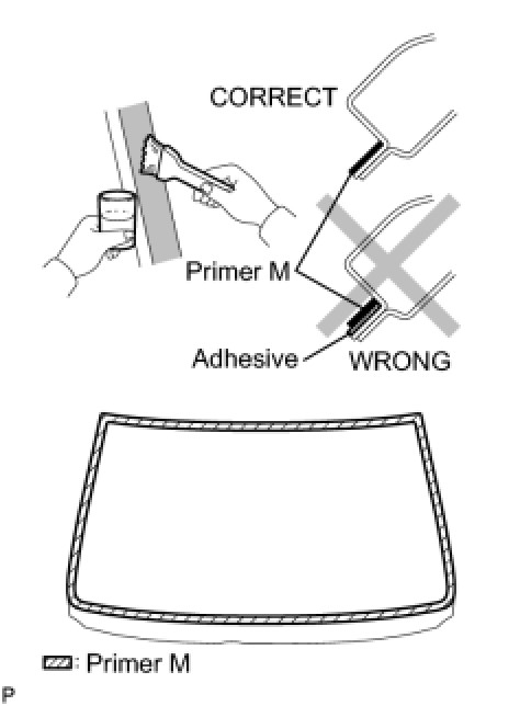 (a) Using a brush or sponge, coat the application area of the No. 2 windshield glass stoppers with Primer G.
