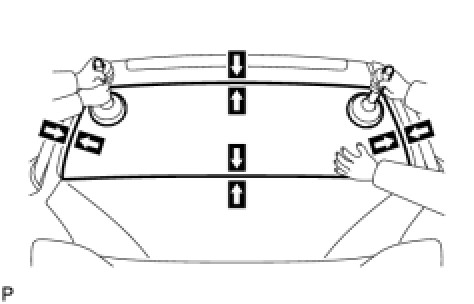(1) Using suction cups, position the glass so that the reference marks are aligned, and press it in gently along the rim.