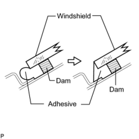 (b) Install a new adhesive dam onto the windshield glass, as shown in the illustration.