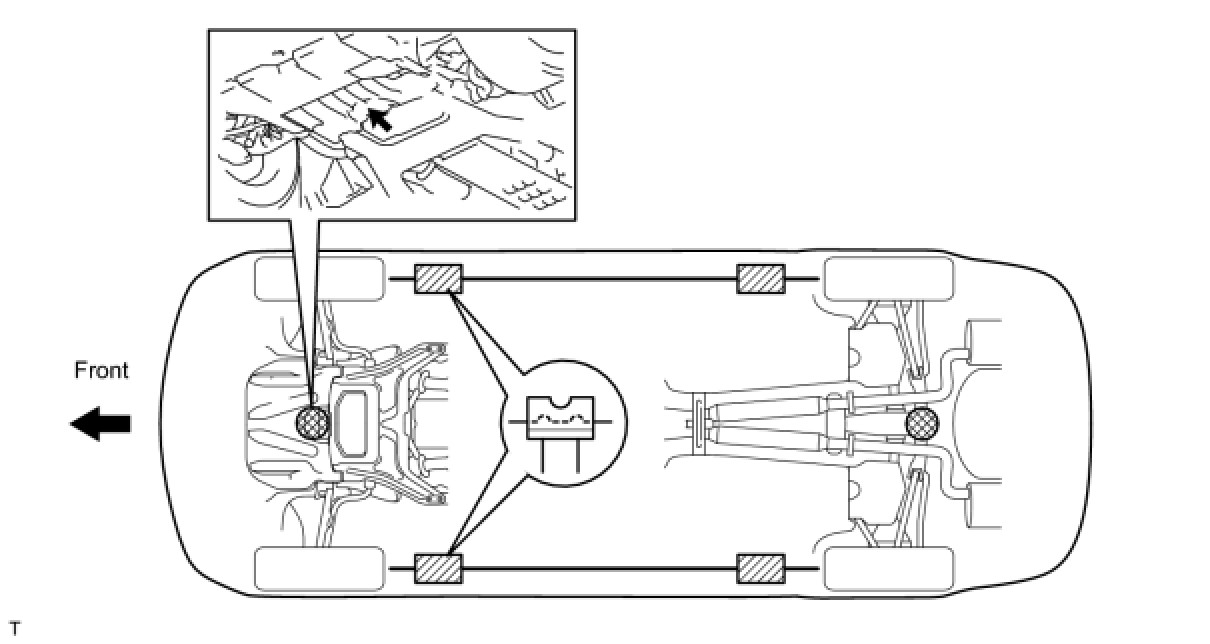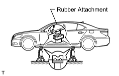 (e) Set the vehicle on the lift as level as possible. Then match the groove of the cradle to the safety stand support locations.