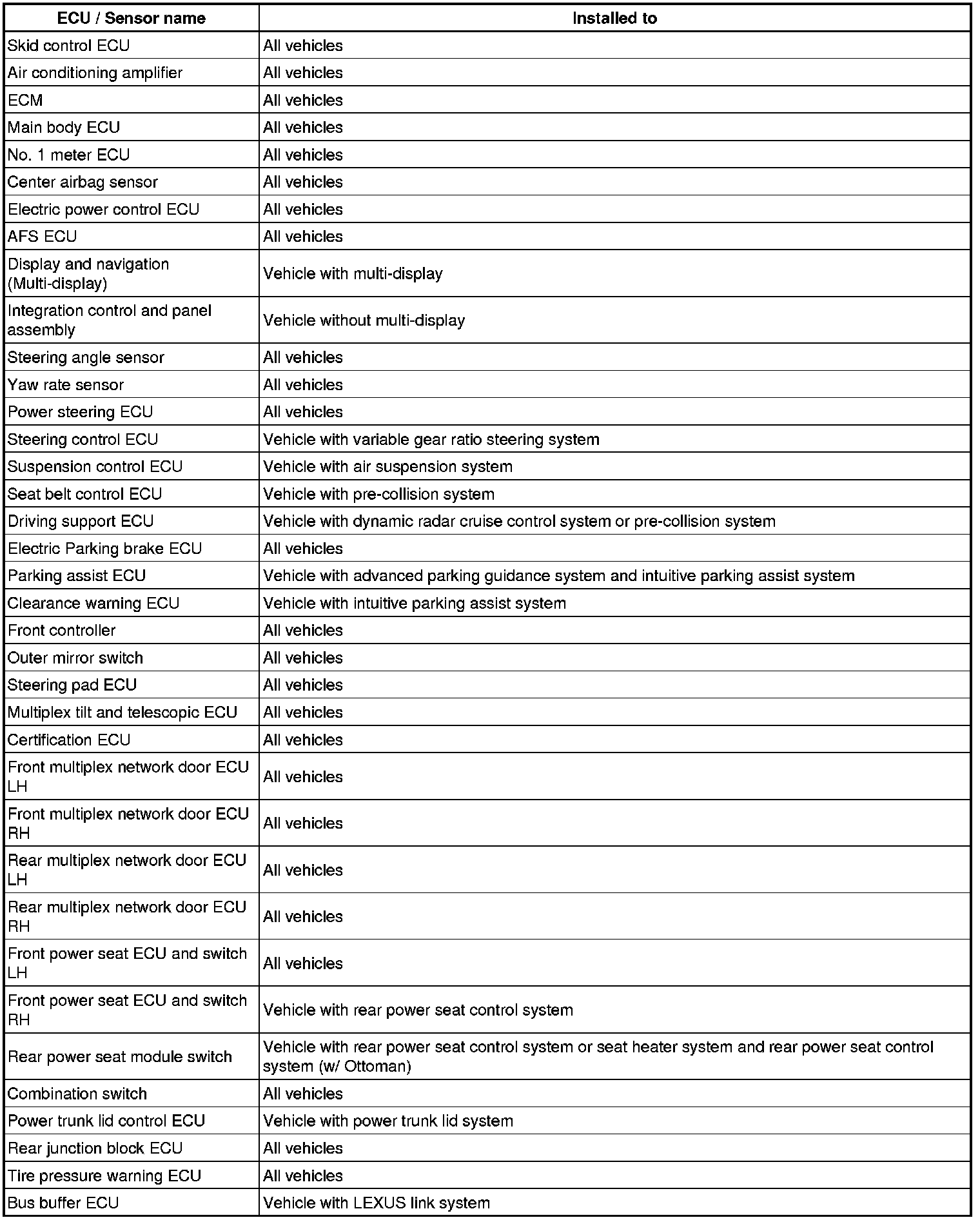 (a) System (ECUs and sensors) that use CAN communication vary depending on the vehicle's optional settings. Check which systems (ECUs and sensors) are installed on the vehicle.
